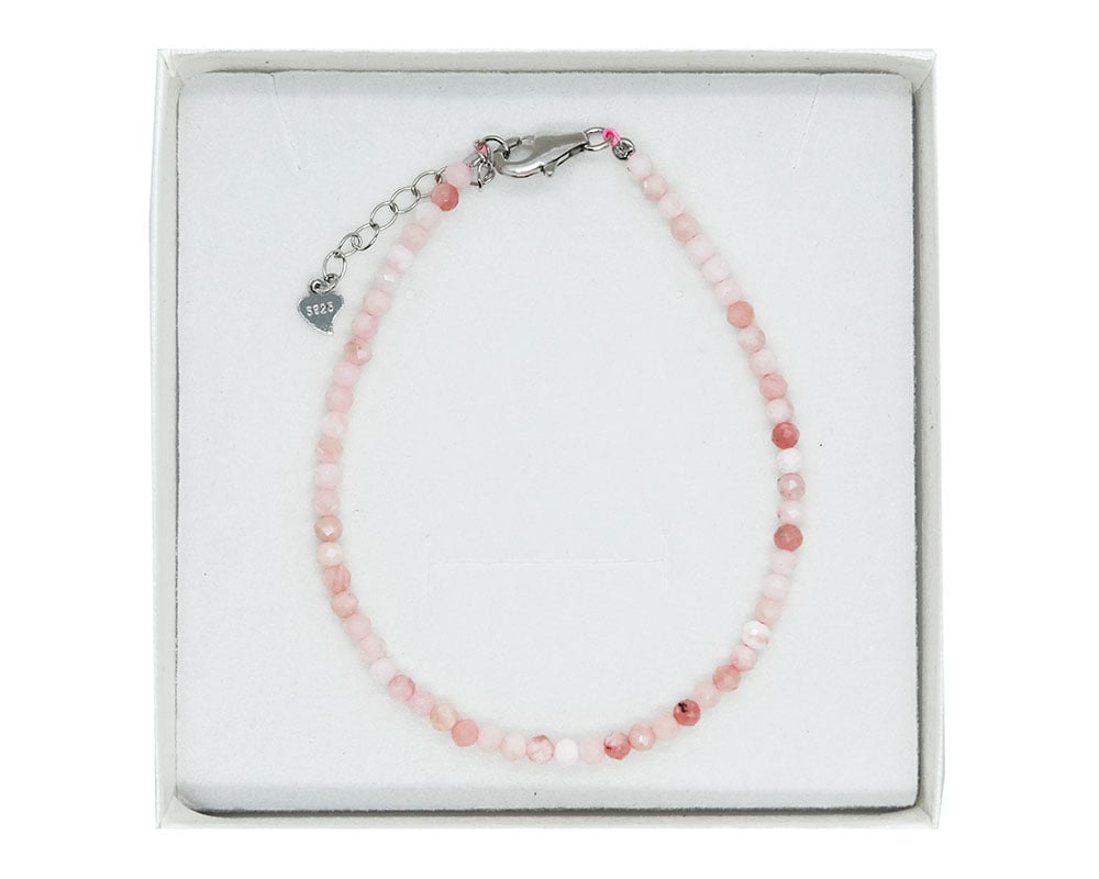 3mm Pink Opal Silver Bracelet