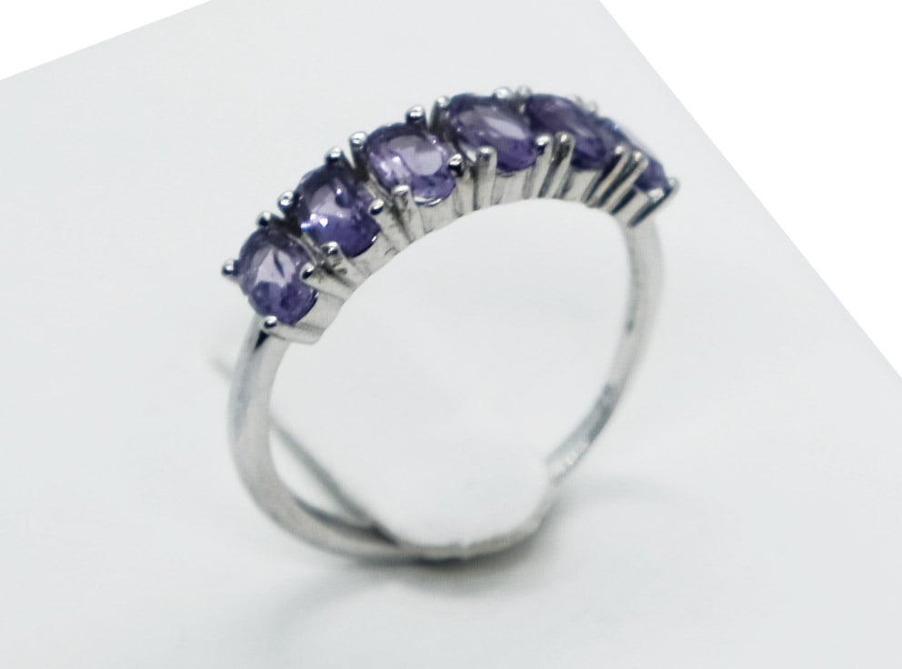 Silver Ring 5 Stones Amethyst, Adjustable Size (N-R)