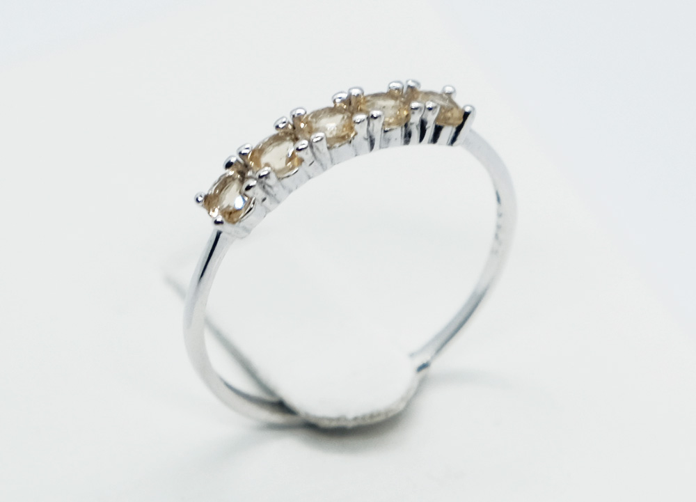 Silver Ring 5 Stones Citrine, Adjustable Size (N-R)