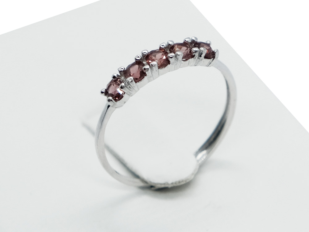 Silver Ring 5 Stones Garnet, Adjustable Size (N-R)