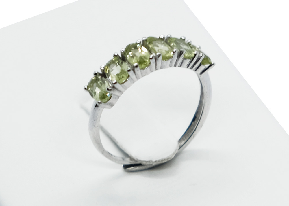 Silver Ring 5 Stones Peridot, Adjustable Size (N-R)