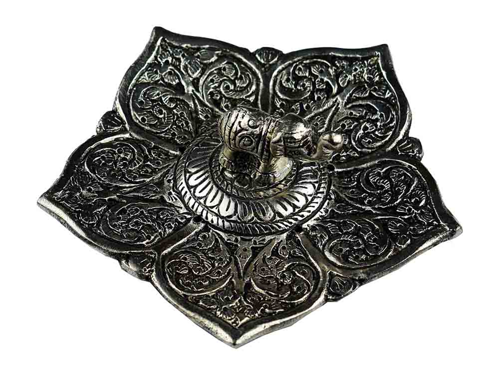Beatiful, skillfully crafted aluminium incense cone holder with great detail. Competively priced to be one of your everyday essentials and to keep the incense remains neat so that no mess is left. It is used with incense cones.