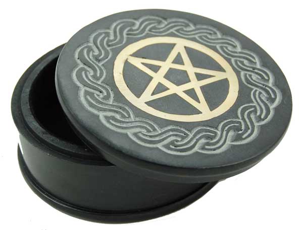 Box Jewellery Soapstone Round With Pentagram 4 Inch