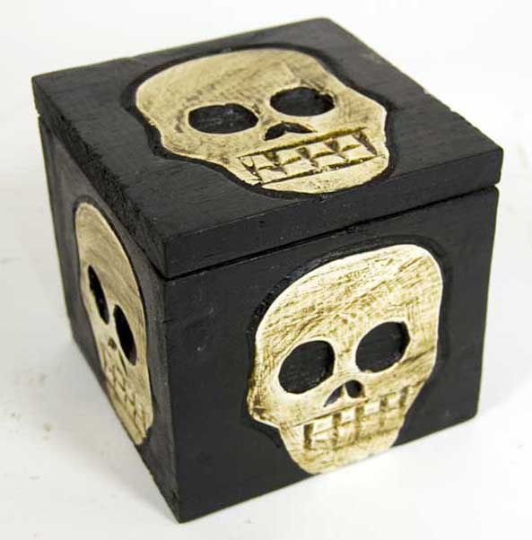 Box Square With Skull Wood 12X12X12cm