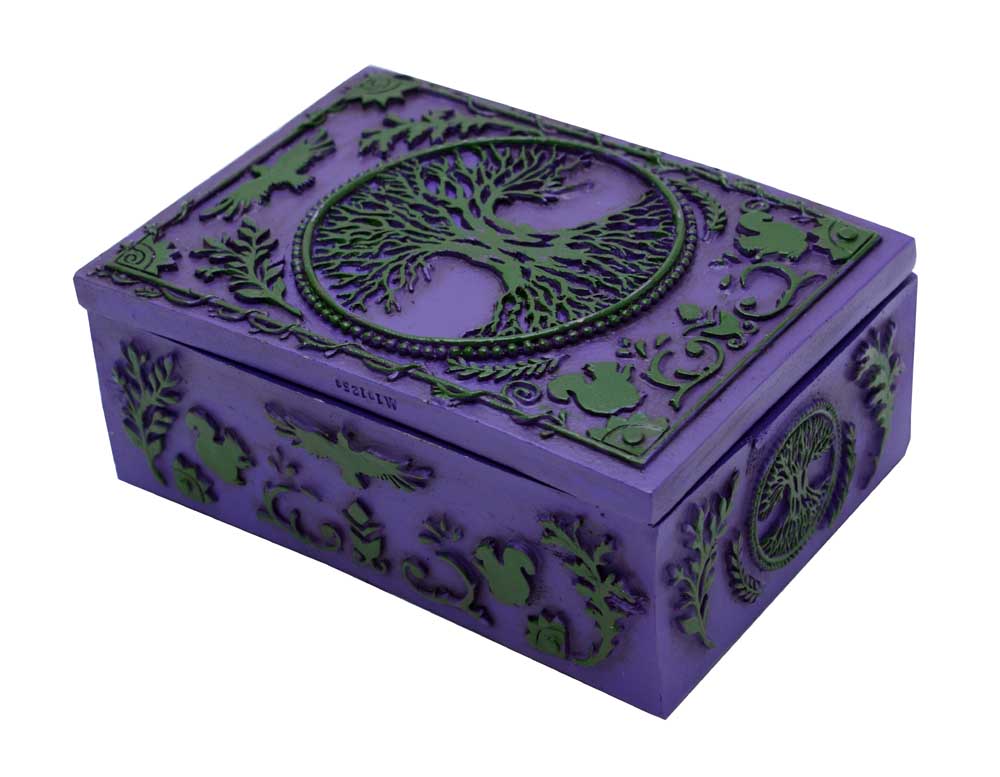 This stunning trinket box is cast in the finest solid resin and skilfully painted to show all of its beautiful details. Can be used as a trinket box, tarot card box (depending on the cards' size) or as a money box. Use it to keep valuables, trinkets, spells, herbs, sage, tarot cards, Feng Shui items, incense, stamps etc. Wonderful gifting idea for friends and family!
