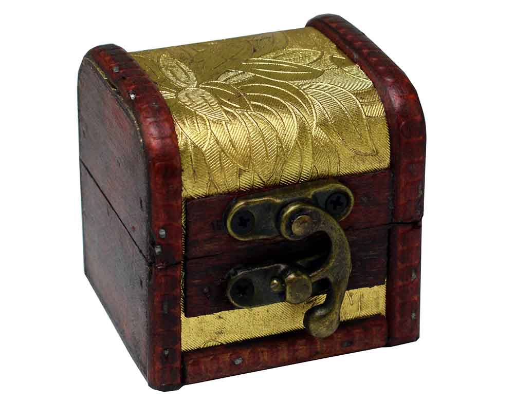 Box Wooden Chest Floral Design Gold Colour With Metal Fastener 6X6X6cm