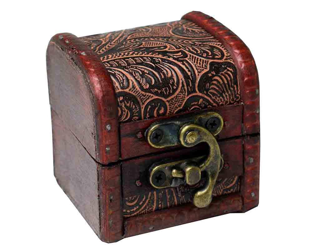 Box Wooden Chest Trunk Style Floral Embossed Design With Metal Fastener 6X6X6cm