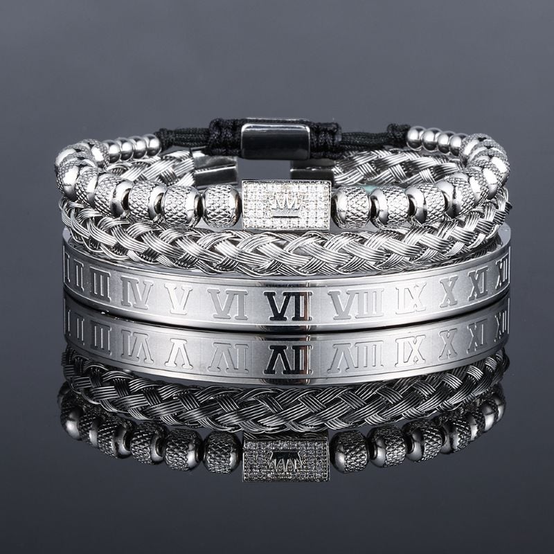 Bracelet 3 Piece Silver MenS Beaded And Bangle Bracelets