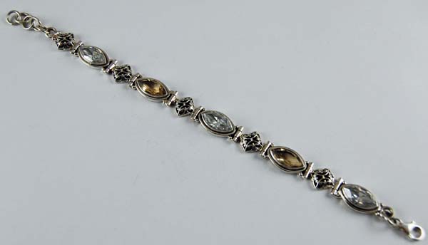 BRACELET SILVER CZ AND CITRINE MIX CUT WITH FANCY HINGES OVAL SHAPE STONE