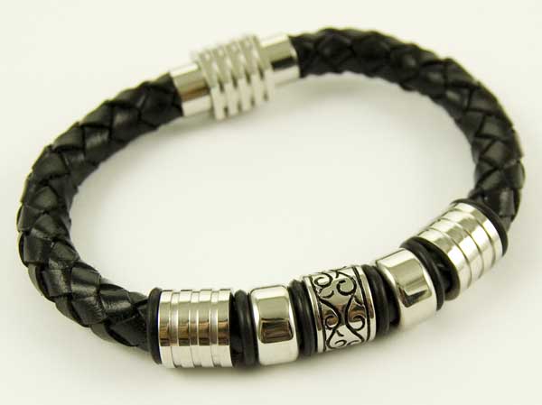 Bracelet Patterned Leather Stainless Steel Magnetic Clasp