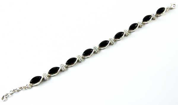 BRACELET SILVER OVAL LINKS ONYX CAB