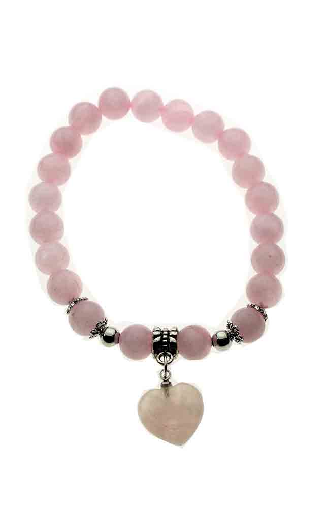 Bracelet Stone Heart Rose Quartz 8mm Beads