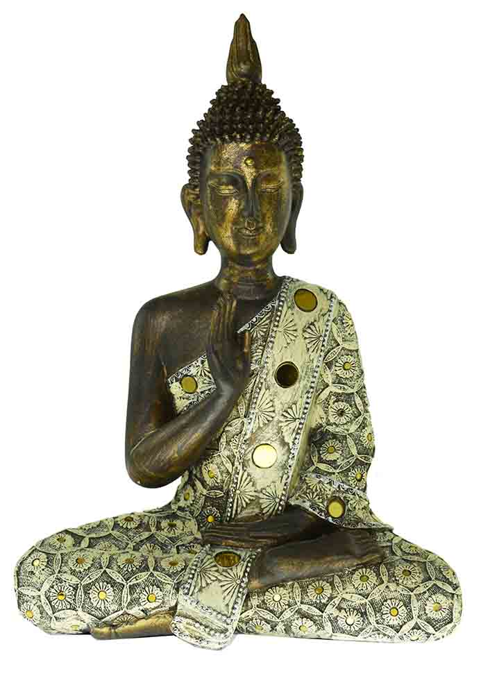Buddha Thai Sitting Protection Pose In Single Lotus Position Poly Resin 16 Inch