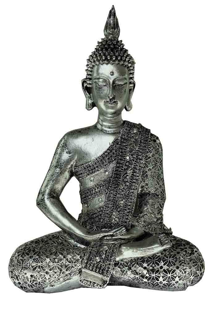 Buddha Thai Style Figurine Resin Silver Colour. Size 26.5x13x38cm