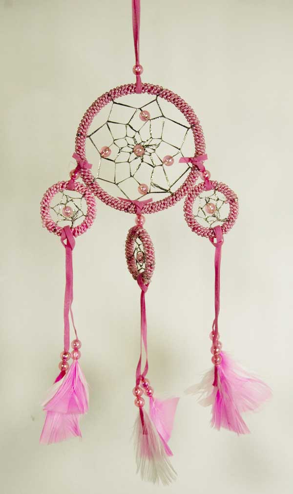 Dream Catcher Beaded 4 Circles Pink 8cm