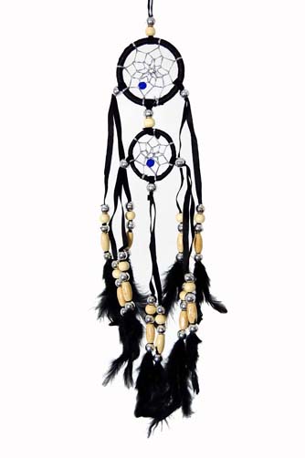 Dream Catcher Nylon With Wooden Beads Black 7.5cm