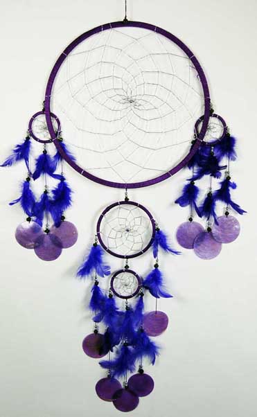 Dream Catcher Nylon With Feathers And Discs Purple 31cm
