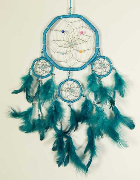Dream Catcher Hexagonal Shape With 3 Mini Dream Catchers Turquoise 12cm