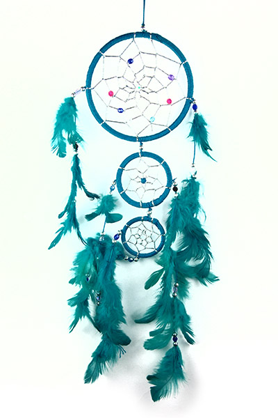 Dream Catcher Triple Circle Turquoise With Beads And Feathers 12cm
