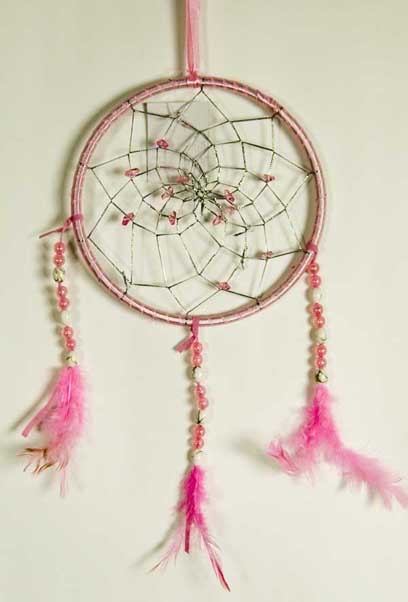 Dream Catcher With Beads Pink 6.5 Inch