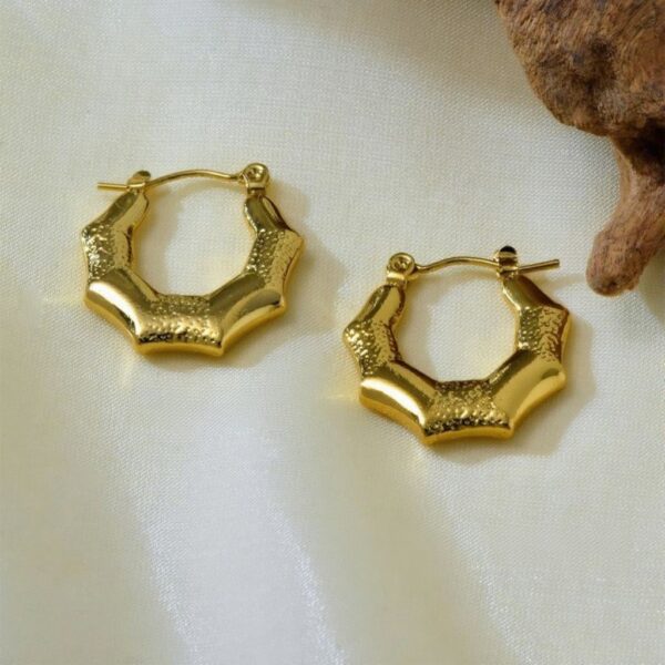 Earring Stainless Steel Chunky Design 18K Yellow Gold Plated Waterproof Non-Tarnish