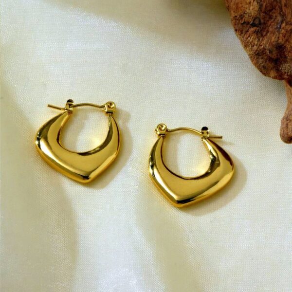 Earring Stainless Steel Chunky Design 18K Yellow Gold Plated Waterproof Non-Tarnish Inner Diameter 12mm