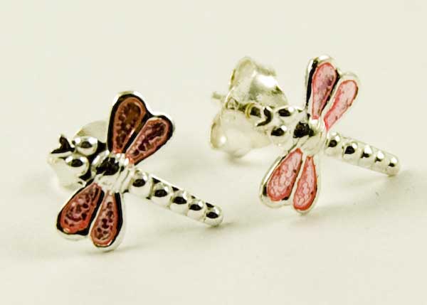 Earring Silver Dragonfly Enamel Pink L 1cm