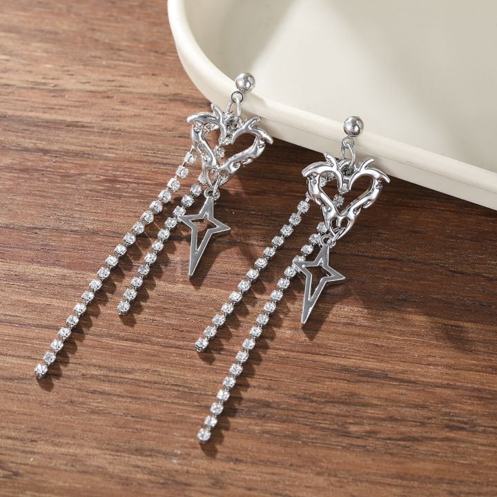 Earring Fashion Gothic Silver Plated Heart And Stars