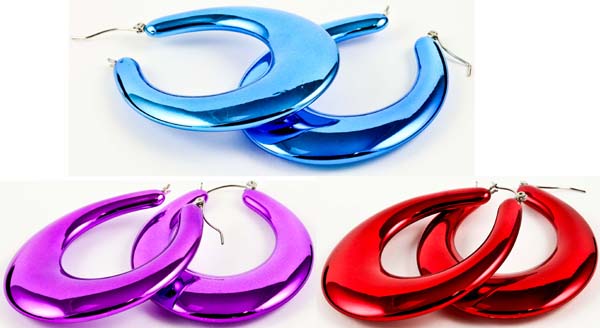 EARRING HOOP 6 ASSORTED COLOURS IN BAG INCLUDING PURPLE BLUE AND RED