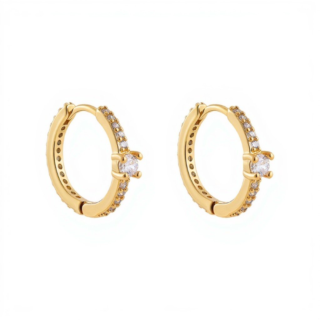Earring Stainless Steel Multi Stone Clear Zircon 18K Yellow Gold Plated