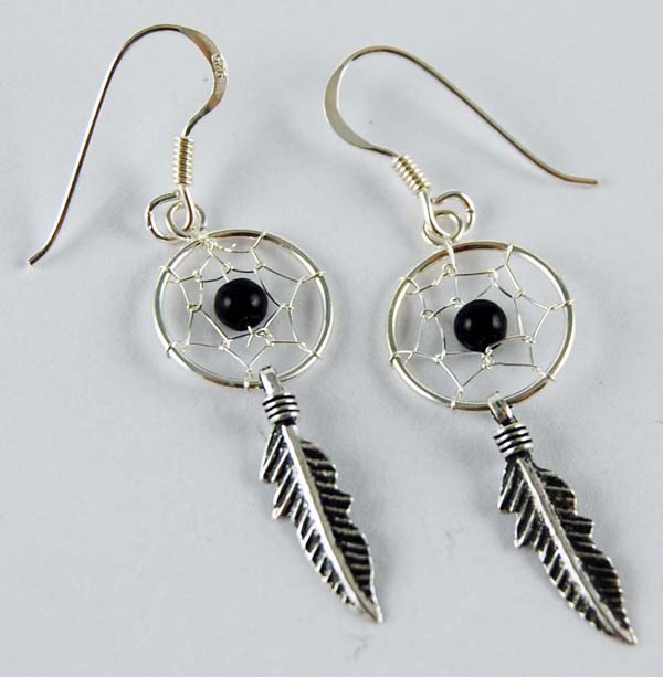 EARRING SILVER DREAM CATCHER BLACK 12MM