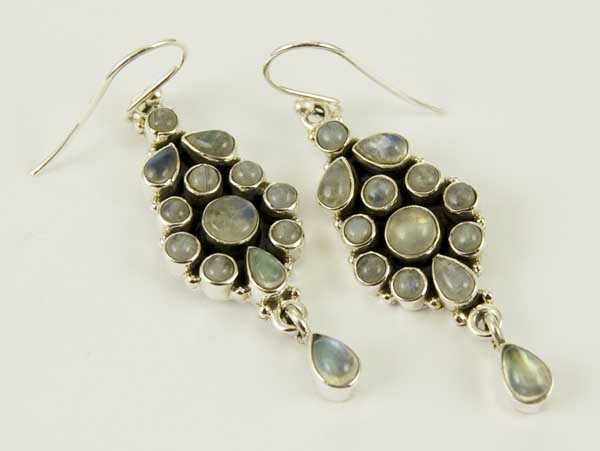Earring Silver Drop With 13 Moonstone Stones L4.2cm