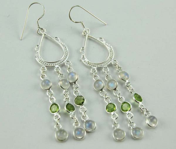EARRING SILVER MOONSTONE TEAR DROP SHAPE WITH MIXED STONES