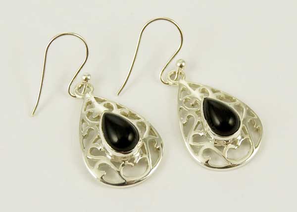 Earring Silver Oval Cut Drop With Black Onyx Stone L2.5cm