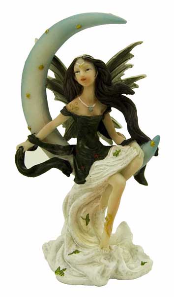 Fairy Gothic With Black And Ivory Dress Sitting On Moon 8X7X13cm