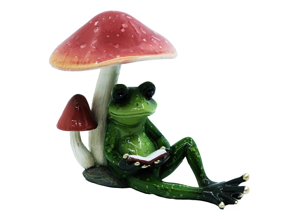 Frog Reading Under Mushroom Approx. 13.2 x 7.5 x 11cm