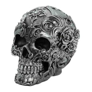 This Skull Figurine is cast in the finest solid resin and skilfully painted to show all of the beautiful details.The skull, symbolic of death and mortality, is a well-loved ornament in households all over the world. Whether used as a quirky centrepiece or to add a dark twist to an otherwise normal space. Skulls are an amazing gift or decorative piece. Ancient civilizations like the Egyptians, Maya and the Aztecs used the skull as a symbol for the cycle of death and rebirth. Ancient Aztec ceremonies and celebrations have evolved to the ?Dia de los Muertos?, or ?Day of the Dead? celebrated in most regions of Mexico and parts of Latin America, and coinciding with the traditional Catholic observances of ?All Saints Day? and ?All Souls Day?. Such a symbol can be observed during these holidays with the ?Sugar Skull? candy.
