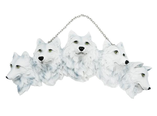 Hanging 5 White Wolves Heads 28.5x5.8x13cm