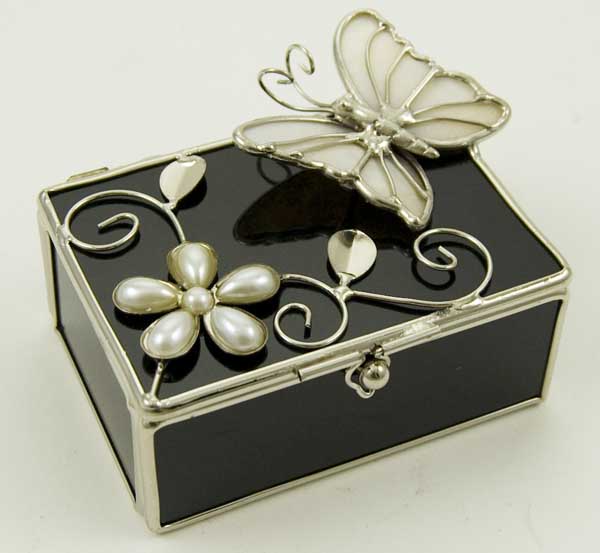 Glass Jewellery Box Black With Butterfly And Flower L7XW5XH3cm