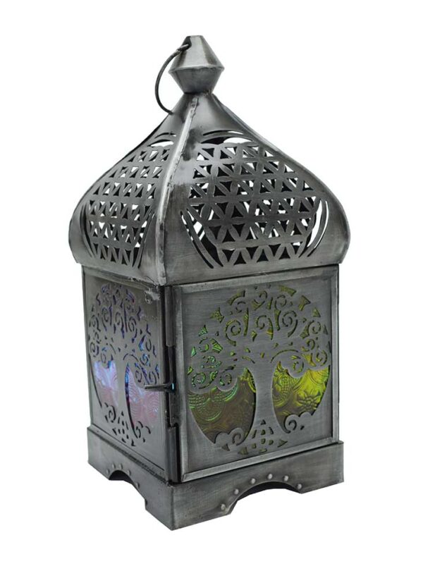 Lantern Candle Holder Tree Of Life Antique Silver Effect H22cm 10X10cm