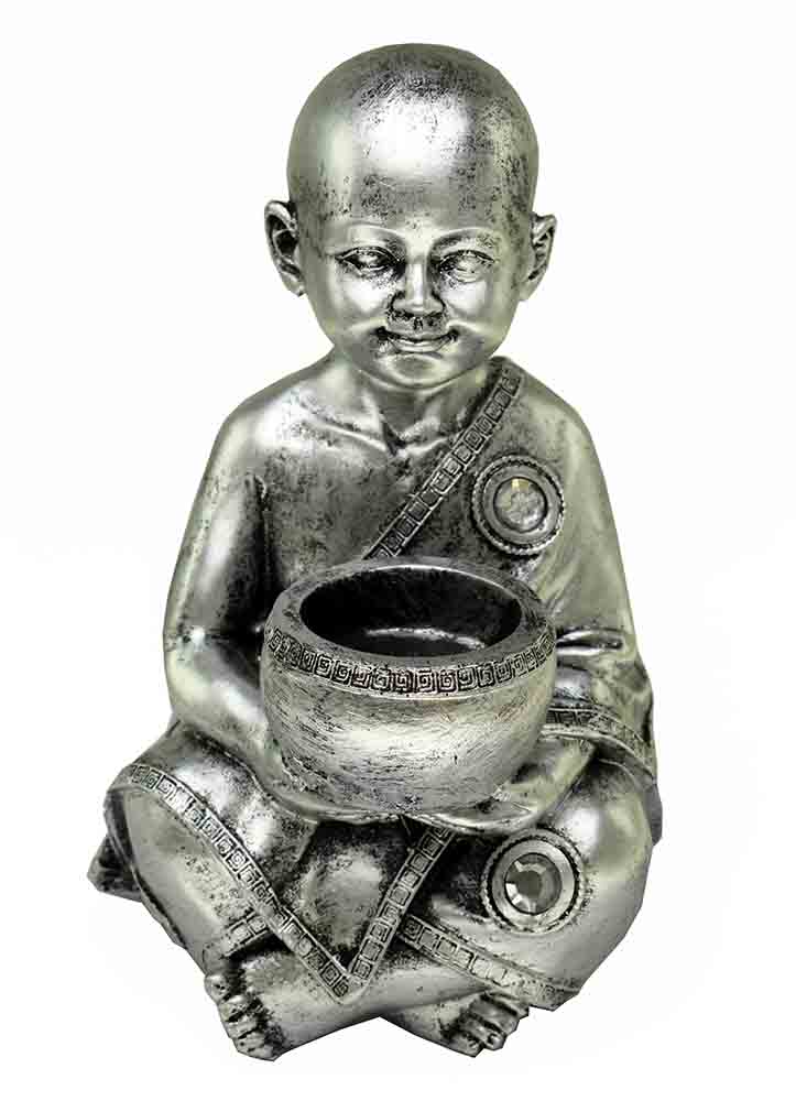 Buddhist Monk T-Light Holder Silver Colour 13.5x13.5x20cm