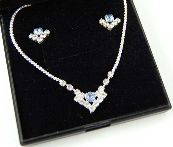 Necklace And Earring Set Blue Studs With Clear Stone