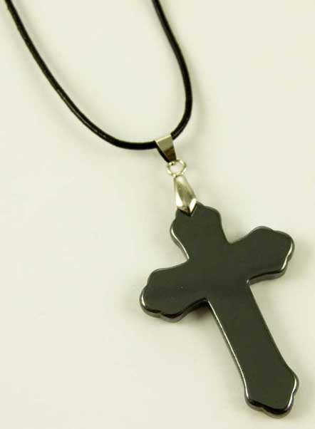 Necklace Cross Hematite 141 With 1.5mm Leather Cord