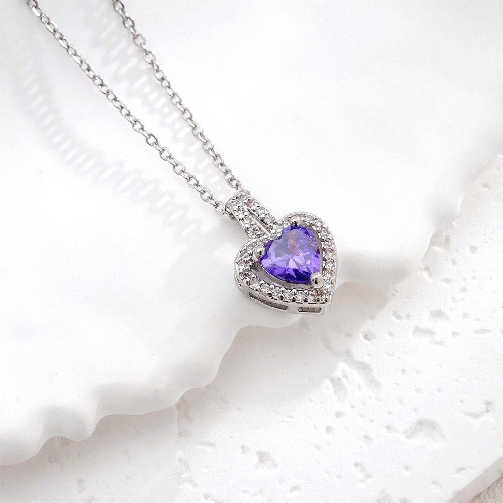 Necklace Heart Purple Stone