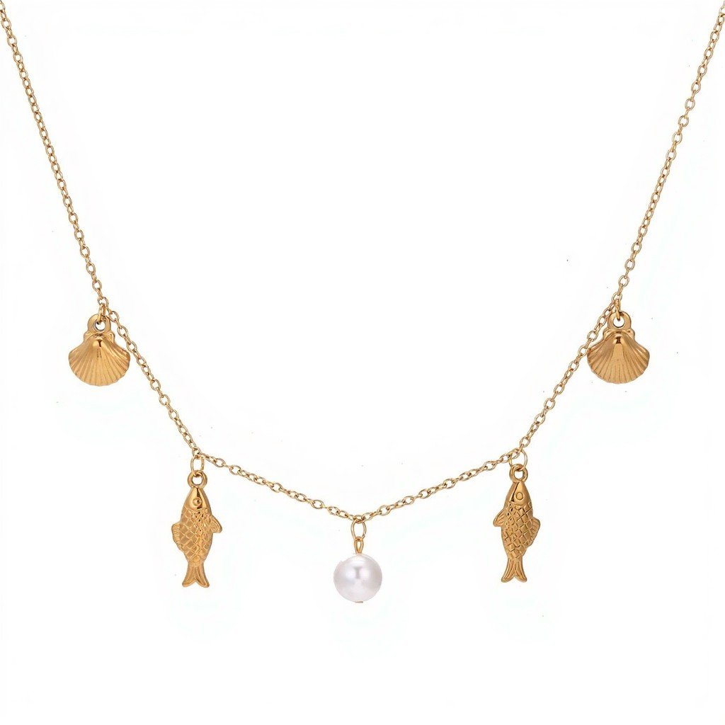 Necklace Stainless Steel Shell Fish 18K Yellow Gold Plated Waterproof Non-Tarnish