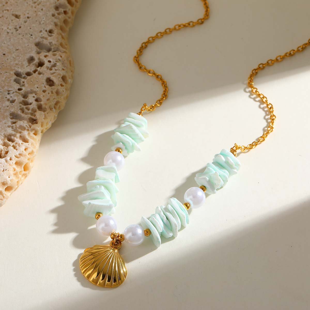 Necklace Shell 18K Yellow Gold Plated Stainless Steel