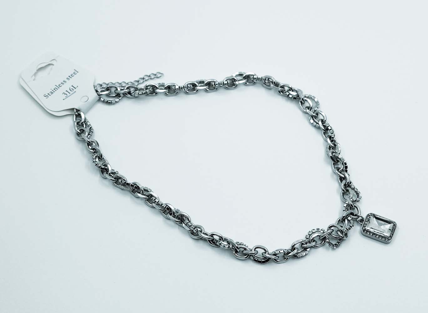 Necklace Stainless Steel Square CZ