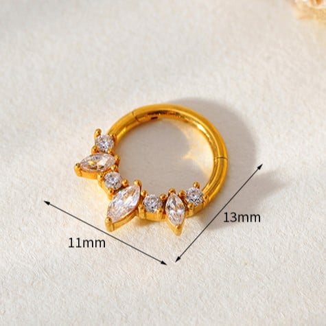 Nose Stud Stainless Steel Ring 18K Yellow Gold Plated With Zircon Stones Waterproof Non-Tarnish 1 Piece