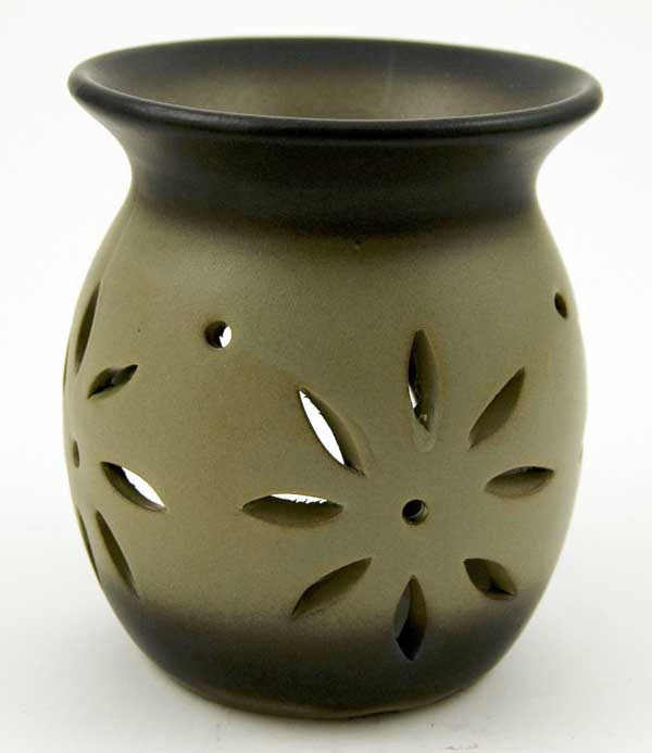 Oil Burner Ceramic Floral Cut Black And Natural H11cm