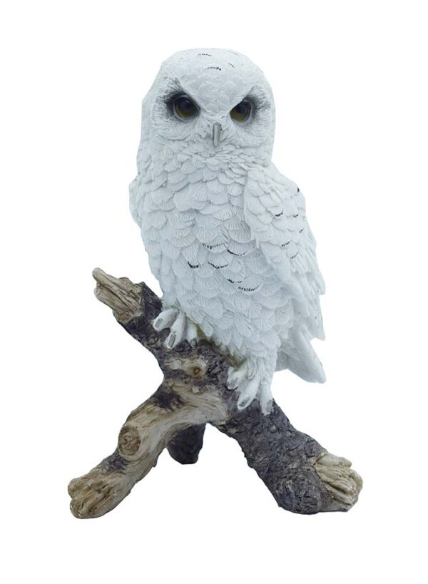 Owl White Sitting On Tree Trunk 12 X 9.5 X 19 cm